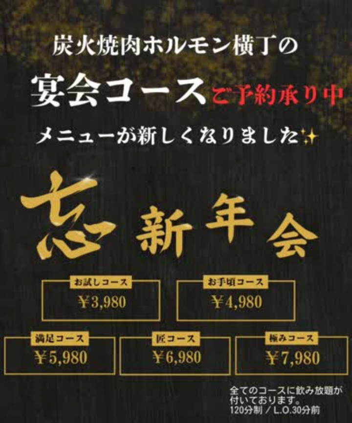忘新年会はホルモン横丁でいかがでしょうか?!