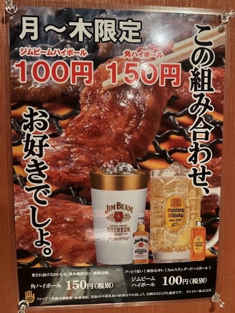 【徳山店限定!】月~木曜日限定 角ハイボール165円 ジムビームハイボール110円!